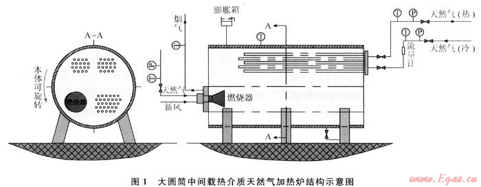 1) 大圓筒中間載熱介質(zhì)天然氣加熱爐是目前應用較廣的天然氣加熱設備,但數(shù)值計算和試驗結果均表明:大圓筒內(nèi)對稱布置加熱面和受熱面的結構不利于熱流場的形成。