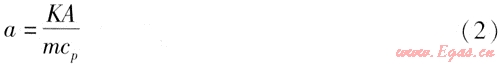 由于冷水溫度不斷變化,室內(nèi)空氣平均溫度等也會出現(xiàn)波動,因此K不為常量。該工程冷水機(jī)組關(guān)機(jī)與開機(jī)的時間間隔約8h,冷水溫升較小,且室內(nèi)空氣平均溫度等變化不大,對傳熱系數(shù)的影響較小,因此在計(jì)算中將K視為常量。對于確定的空調(diào)系統(tǒng),A、m、cp均為定量,令: