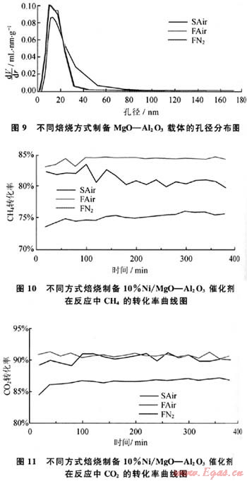 表3 不同焙燒方式制備4%MgO-Al203載體的物理性質(zhì)表