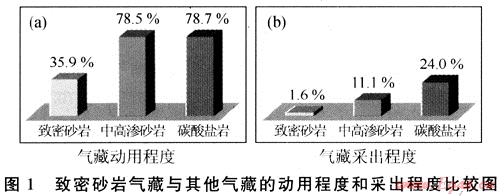 雖然在開(kāi)發(fā)技術(shù)上取得了成效,但在氣藏的動(dòng)用程度和采出程度方面,致密砂巖氣藏遠(yuǎn)遠(yuǎn)低于中高滲透砂巖氣藏和碳酸鹽巖氣藏(見(jiàn)圖1),處于規(guī)模開(kāi)發(fā)的早期階段。