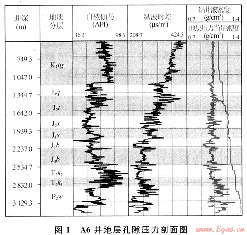 就鉆井工程而言,地層壓力是近平衡壓力鉆井的依據(jù),對于設(shè)計(jì)套管程序、合理選用鉆井液密度、減少油氣層污染等方面都具有重要的經(jīng)濟(jì)價(jià)值[1~2]。因此,能否進(jìn)行準(zhǔn)確的地層孔隙壓力評(píng)價(jià),正確認(rèn)識(shí)鉆井地層壓力環(huán)境,已成為急需解決的問題。通過對準(zhǔn)噶爾盆地地質(zhì)構(gòu)造及地層壓力成因機(jī)理的分析,應(yīng)用測井資料解釋方法對準(zhǔn)噶爾盆地東部地區(qū)A1井等6口井的地層壓力進(jìn)行了預(yù)測。結(jié)果表明,該預(yù)測技術(shù)具有很強(qiáng)的實(shí)用性,計(jì)算精度高。