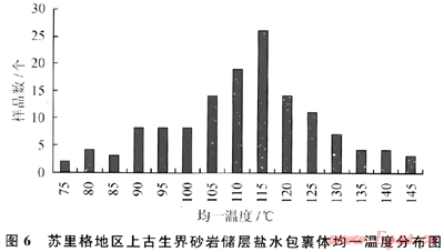 蘇里格地區(qū)上古生界儲層成巖作用主要經(jīng)歷了壓實作用,壓溶作用,火山物質(zhì)的水化、脫水、蝕變和溶蝕作用,白生礦物的析出及膠結(jié)作用等。其中壓實及硅質(zhì)膠結(jié)作用是儲層致密化的主要原岡。根據(jù)石英次生加大邊中流體包裹體測溫及其溫度分布頻率,可以認為90~140℃是石英膠結(jié)物形成的主要時期(圖6),