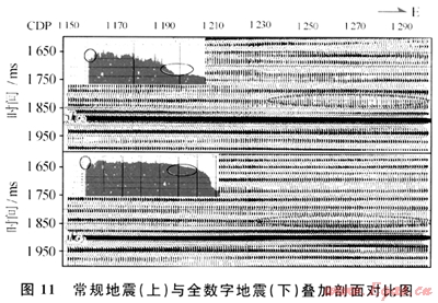 地震采集由早期的短排列向長排列觀測系統(tǒng)轉(zhuǎn)變,由常規(guī)檢波器接收向全數(shù)字檢波器接收轉(zhuǎn)變,形成了“小道距、大偏移距、單點數(shù)字檢波器”的采集技術(shù),地震資料有效頻帶由以往的8~85Hz拓寬到4~120Hz(圖11)。