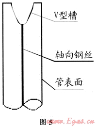 管口毛刺、翻邊清理完成后,為防止碰頭完成后天然氣沿骨架與PE材料之間空隙竄動(dòng)而損傷管道本體,需對(duì)斷口管壁開槽、填料進(jìn)行封堵,用砂輪機(jī)將斷口管壁磨成V形或U形(如圖5),采用與復(fù)合管母材相同材質(zhì)的PE焊條用熱風(fēng)機(jī)同時(shí)加熱母材與焊條,當(dāng)焊條與母材融化發(fā)軟時(shí),將焊條壓入V形槽,注意須先將焊條氧化層打磨掉,封堵應(yīng)將骨架完全覆蓋。在開槽時(shí)會(huì)有火花及粒狀或粉狀PE材料飛濺,施工人員應(yīng)佩帶好防塵護(hù)具。