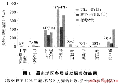 表1 1998~2008年蜀南地區(qū)鉆探成效統(tǒng)計(jì)表