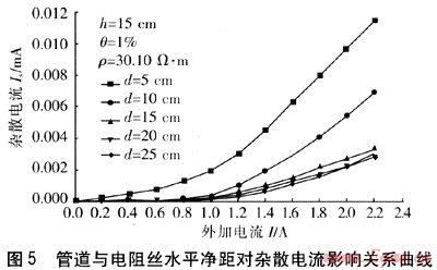 ④ 管道與電阻絲水平凈距對(duì)雜散電流的影響