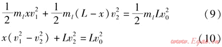 mlxv1+mlv2(L1+L2-x)=mlv0(L1+L2)    (5)