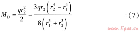 由式(5)、(6)可知,當r2≥r1時,MD≥MB。因此,只要活動支架D處管道滿足強度條件,活動支架B處的管道必然滿足強度條件。將式(4)代入式(6),得到: