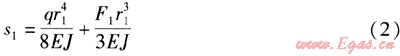 對于懸臂梁BC,轉(zhuǎn)角C處垂直位移s1的計算式為:
