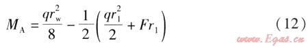 按強度條件確定活動支架A、B的最大允許間距rw,max,必須考慮最不利情況。以r1為變量對式(12)求極值,可求得到當r1=0時MA取得最大值,即: