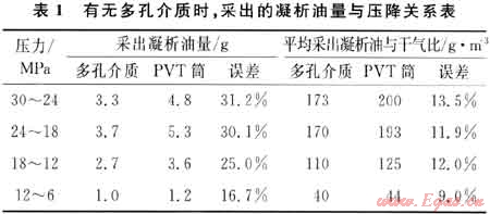 2) 多孔介質(zhì)相態(tài)研究有待繼續(xù)下去,在露點(diǎn)壓力到最大凝析壓力之間,多孔介質(zhì)對凝析油的采出程度降低可達(dá)31.2%,值得重視。