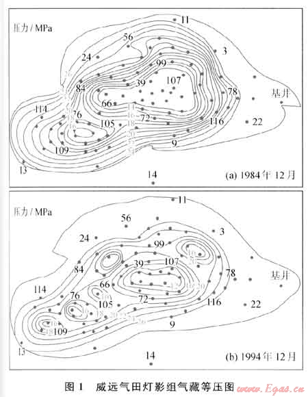 ① 威遠(yuǎn)49井,1972年投產(chǎn),逐月加大生產(chǎn)壓差,由1.37MPa上升到9.22MPa,僅230d就見地層水;而威23井,生產(chǎn)壓差一直保持在0.4MPa左右,帶水自噴生產(chǎn)期長達(dá)13a之久。