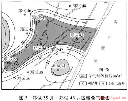 鄭試35井鄭試43井所在區(qū)域(圖2)靠近寺頭斷層,區(qū)域內(nèi)NNE向小斷層發(fā)育,而鄭試35井和鄭試43井均處于斷層附近,距離斷層小于100m3。斷層切割煤層會破壞頂?shù)装宓姆獯嫘阅?,加速煤層氣的解析、逸散,且部分?jǐn)鄬涌赡軠贤簝痈浇畬樱瑢?dǎo)致煤層氣的溶解流失。因此,鄭試35井-鄭試43井區(qū)內(nèi)含氣量普遍較低,鄭試35井、鄭試43井的含氣量僅為3.24m3/t和8.06m3/t。