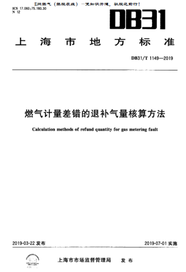 本標(biāo)準(zhǔn)適用于直接與供氣企業(yè)貿(mào)易結(jié)算的燃?xì)庥嬃垦b置[工作壓力不大于0.4 MPa(表壓)的城市管道燃?xì)鈃發(fā)生計量差錯退補(bǔ)氣量的核算。當(dāng)燃?xì)庥嬃垦b置發(fā)生非正常計量或其他計量差錯時,退補(bǔ)氣量的核算亦可參照執(zhí)行。