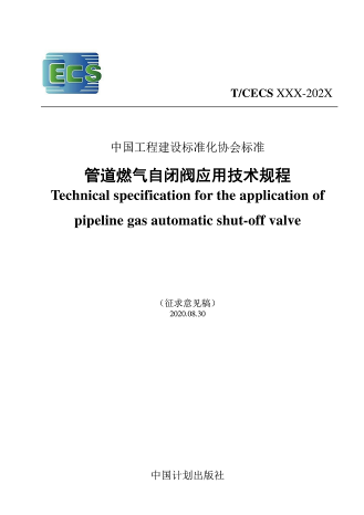 根據(jù)中國工程建設(shè)標(biāo)準(zhǔn)化協(xié)會(huì)《關(guān)于印發(fā)<2017年第二批工程建設(shè)協(xié)會(huì)標(biāo)準(zhǔn)制訂、修訂計(jì)劃>的通知》(建標(biāo)協(xié)字〔2017〕031號)的要求,由中國市政工程華北設(shè)計(jì)研究總院有限公司等單位編制的《管道燃?xì)庾蚤]閥應(yīng)用技術(shù)規(guī)程》,經(jīng)協(xié)會(huì)城鎮(zhèn)燃?xì)鈱I(yè)委員會(huì)組織審查,現(xiàn)批準(zhǔn)發(fā)布,編號為T/CECS 905-2021,自2022年1月1日起施行。