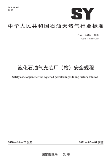 液化石油氣充裝廠(站)安全規(guī)程SY/T 5985-2020