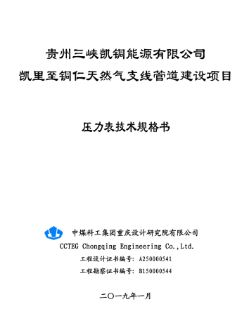 天然氣支線管道建設(shè)項(xiàng)目站場(chǎng)控制設(shè)備自控_壓力表技術(shù)規(guī)格書(shū)