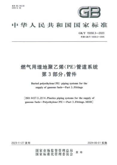 燃?xì)庥寐竦?a href=http://www.shudonglove.com/e/tags/?tagname=%E8%81%9A%E4%B9%99%E7%83%AF target=_blank class=infotextkey>聚乙烯(PE)管道系統(tǒng) 第3部分:管件GB/T 15558.3-2023